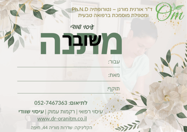 שובר מתנה מקנה טיפול עיסוי מפנק של 45 דקות.